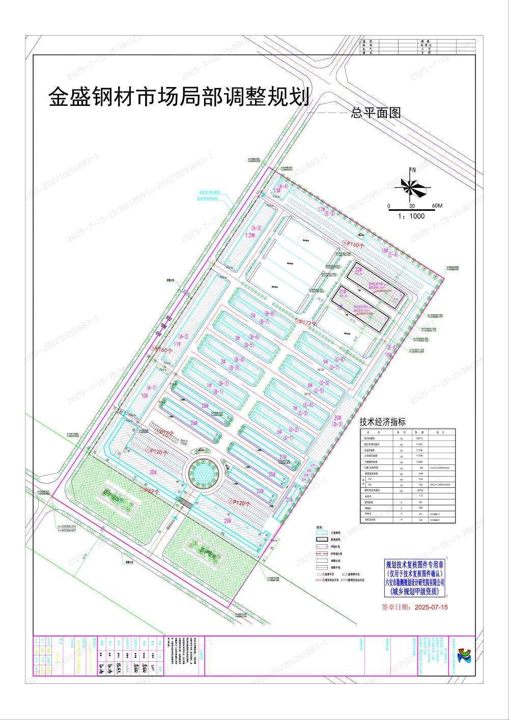 由六安市金盛钢材现货交易市场管理公司建设的金盛钢材市场项目,位于平桥工业园平桥大道以北、金盛路以东,该项目总建筑面积113748平方米,容积率1.0,建筑密度35%,绿地率26%。