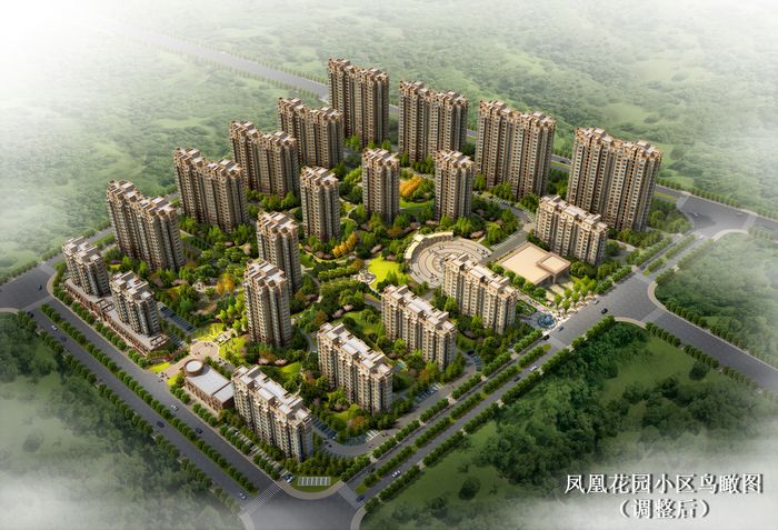 附:凤凰花园城规划方案调整前、后总平面图和效果图。