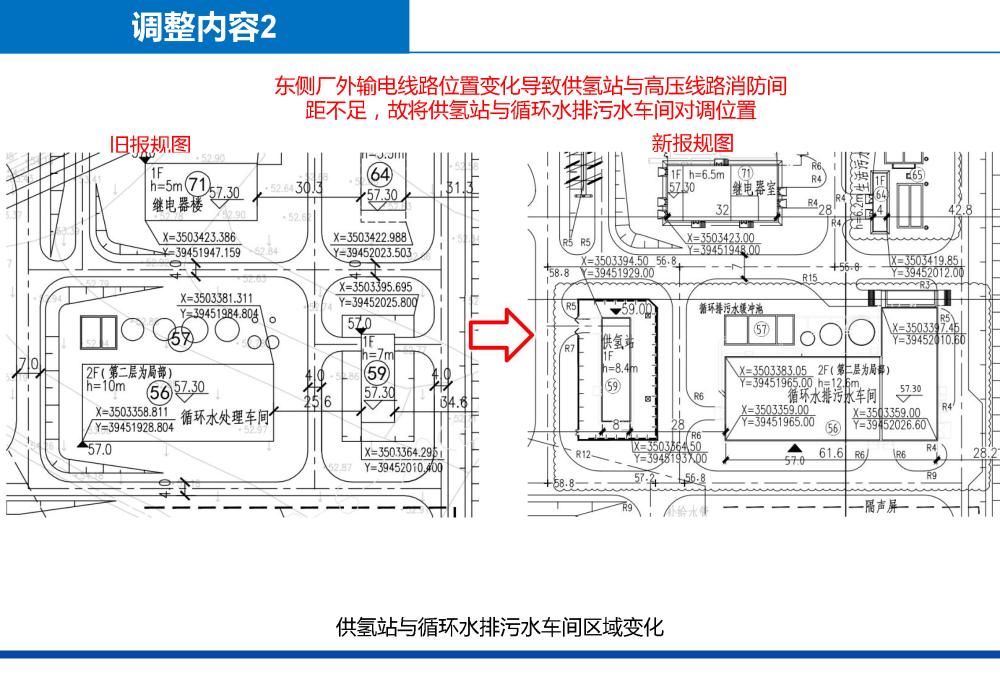 2.将供氢站与循环水处理车间位置对调;循环水处理车间平面尺寸微调,占地面积增加约508平方米。