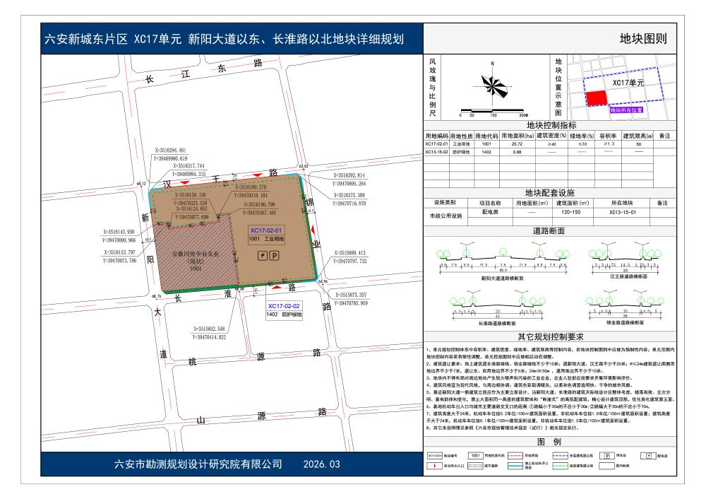 关于《六安新城东片区XC17单元 新阳大道以东、长淮路以北地块详细规划》(草案)》的批前公示