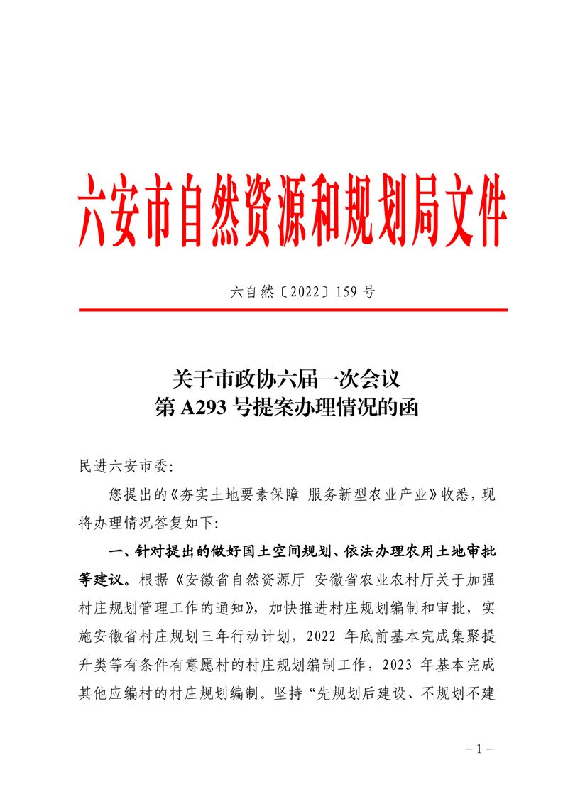 关于市政协六届一次会议第A293号提案办理情况答复的函