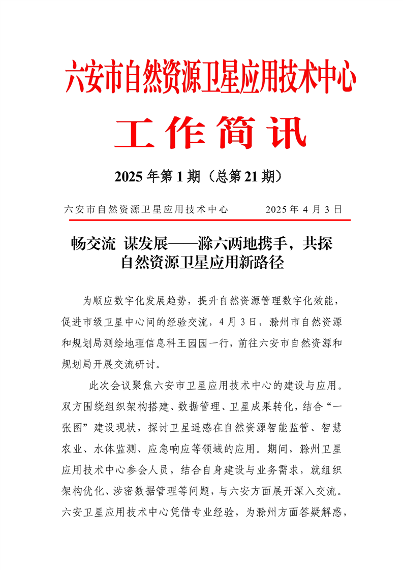 自然资源六安市卫星应用技术中心工作简讯(2025年第1期)