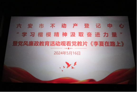 为学习贯彻习近平新时代中国特色社会主义思想和党的二十大精神,用先进典型激励党员干部向身边榜样学习,教育引导单位广大党员干部不忘初心、牢记使命。5月16日晚上,市不动产登记中心党总支开展“学习楷模精神 汲取奋进力量”组织全体党员干部、入党积极分子观影《李夏·在路上》暨党风廉政教育主题党日活动。