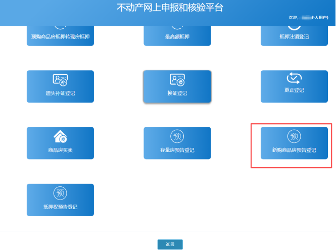 3.进入不动产网上申报平台,选择“新购商品房预告登记”