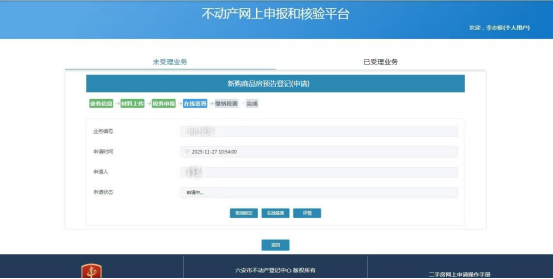 1.打开安徽政务服务网,区域选择“六安市”,点击功能模块“不动产登记”