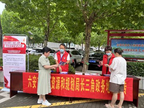 近日,市自然资源局行政审批窗口和不动产登记窗口联合在不动产办事大厅南门开展长三角地图暨“监督一点通”平台宣传。