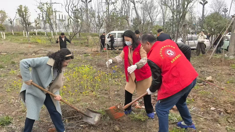 活动现场,党员们热情高涨,干劲十足,纷纷挥锹铲土、放苗回填、培土浇水,合力栽种下一株株树苗,经过一上午的辛勤劳动,共种植60株苗木,为初春增添了一片新绿。
